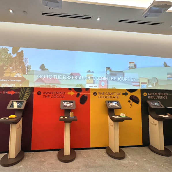 Designed as an interactive installation, the experience takes visitors on a journey from cocoa origin to finished chocolate, combining education, storytelling, and digital engagement. Through a series of interactive stations, users explore the transformation of cocoa while discovering the craftsmanship behind every chocolate creation.